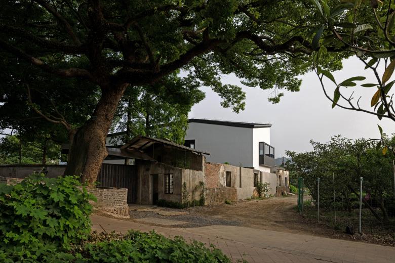 老墙、古樟、圣堂寺旧址、服装厂、村属小学等要素叠加起来是一代代西山人的文化记忆。旧有建筑虽主体结构坍塌但是围墙基本完整,且在百年古樟的掩映下极具地域特色。与现状互动,在任何建筑中都是极其重要的。场地自有气场,在丰富的现状条件下做建筑是令人欣喜的,周边的道路、古树、老墙、太湖、山等都被考虑在设计中,从而打造出属于这个地域适合的建筑。基于老房子的现状与场地的文化记忆,设计采取保留老墙、内部新建的设计策略。从老墙里生长出具有苏州传统民居特色的新建筑。