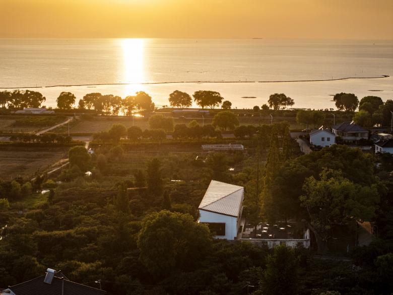 将新的建筑内退为老墙加固提供条件;北侧靠近古樟的部分完全退让满足古树保护要求并留出庭院空间让来客可以感受古樟之美;南侧靠近太湖部分设两层层高以观太湖美景;为守住庭院中四棵挺拔的水杉保留了旧有建筑的合院,根据建筑使用需求植入一字型体量并采用折形屋面建立整个建筑的形式契合江南水乡特色,整个建筑以谦恭的姿态融入老墙、古樟与村落。