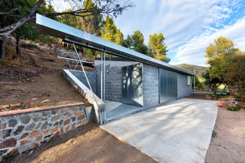 This habitat - store is thought from the existing farm language . The galvanized steel mechanisms are opened or closed in depending of the construction use.