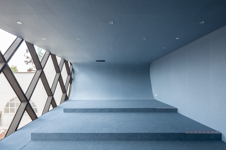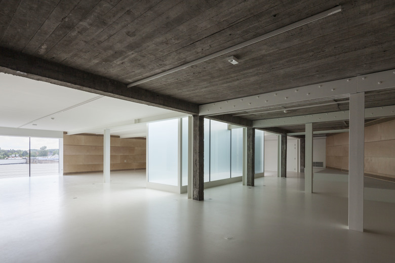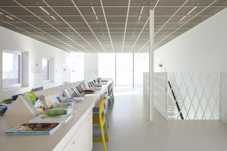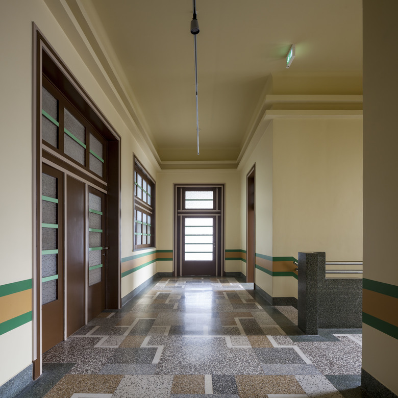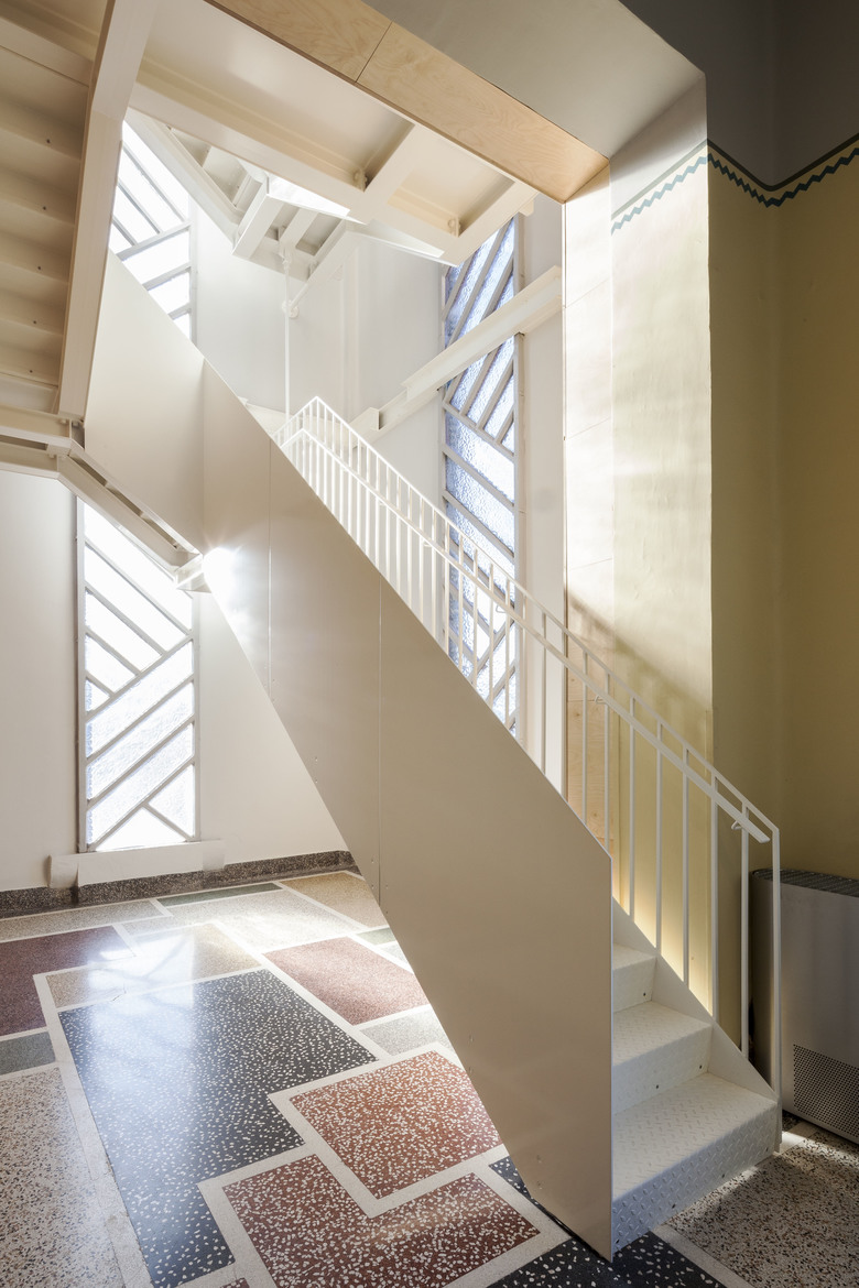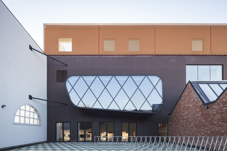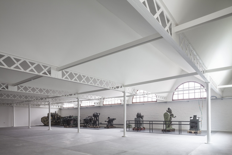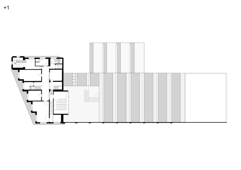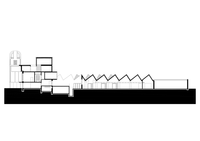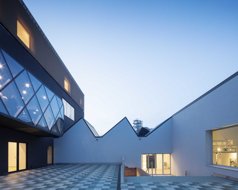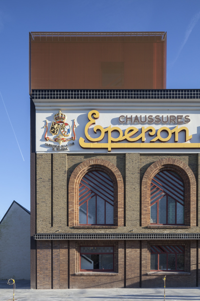 In the industrial area near the port of Izegem lies a somewhat odd monument with an art-déco front office and factory buildings in the back: this is the former shoe factory “Eperon d’Or”. With the new program in mind, this to-be National Museum for Shoes and Brooms was in desperate need of a complete renovation and volume-upgrade. In cooperation with a heritage specialist, we decided to do the minimum. We restored what was already of value and added only the absolutely necessary: a staircase inside, a new small theatre at the backside and a golden exhibition space on top.