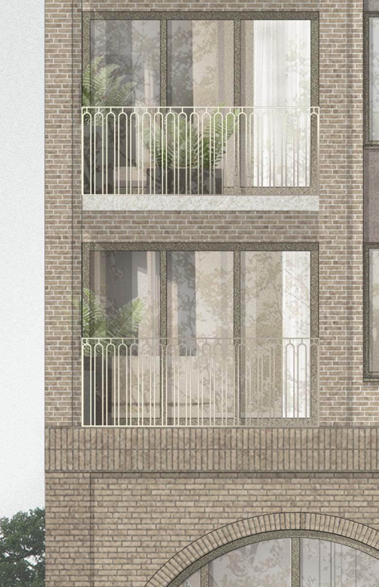 The design and articulation of all individual parts and details of the building volumes are both essential to Ribosomen. The relief patterns of the brick walls clarify the subdivision of the volumes, both vertically and horizontally. An interplay of recessed and classic window niches creates a lively expression and gives added depth to the façade. Complemented with wrought iron balcony railings and arches on the ground floor and robust wooden details around the entrances, Ribosomen becomes an inviting scheme in unison with its historic surroundings.
