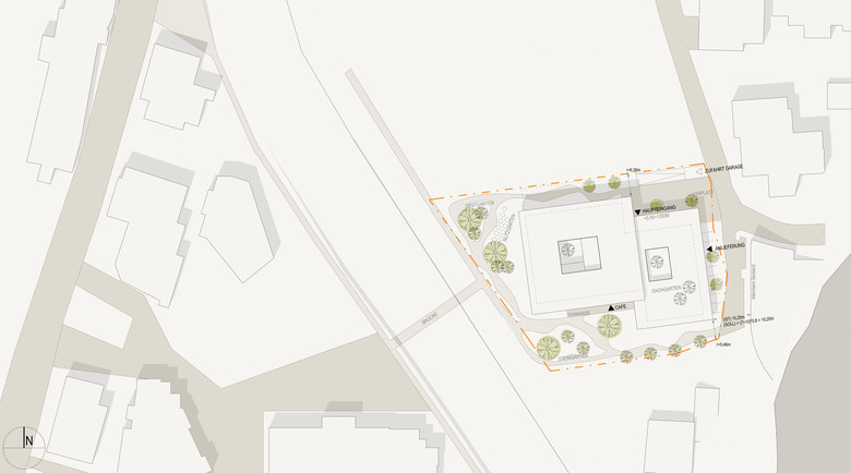 Der Baukörper ist in Hybridbauweise geplant, ressourcenschonenden Materialien wurde der Vorzug gegeben. Holzfassaden, Glasflächen und der gestaltete Garten ergeben eine warme und freundliche Atmosphäre, die auf die umgebende Natur und die bestehenden Gebäude reagiert und als Ort Identität schafft.