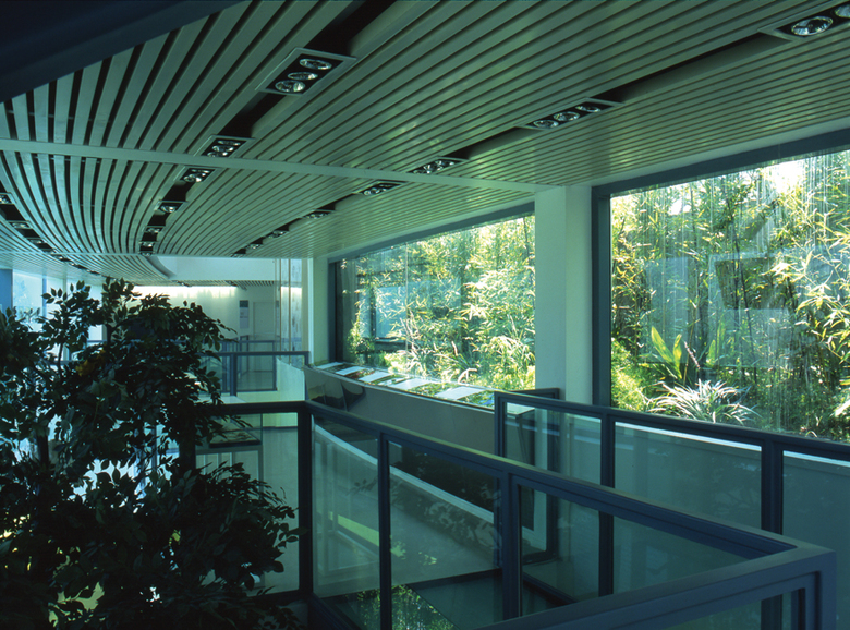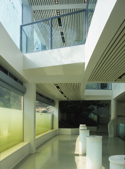 Because this reserve will become a tiny oasis within a dense city, the project should consume as little as possible the green area and, ideally, should increase the greenery. Accordingly, the west side of the building is covered with earth and plants similar to those in the reserve. On the east elevation, a green mesh shields the building too. Considering the fact that the building occupies the former site of a house, this design actually increases the total amount of planted area. The earth shelter design also improves the energy conservation of the structure. Plus, openable windows on the first and roof levels will allow passive ventilation during the mild weathers.