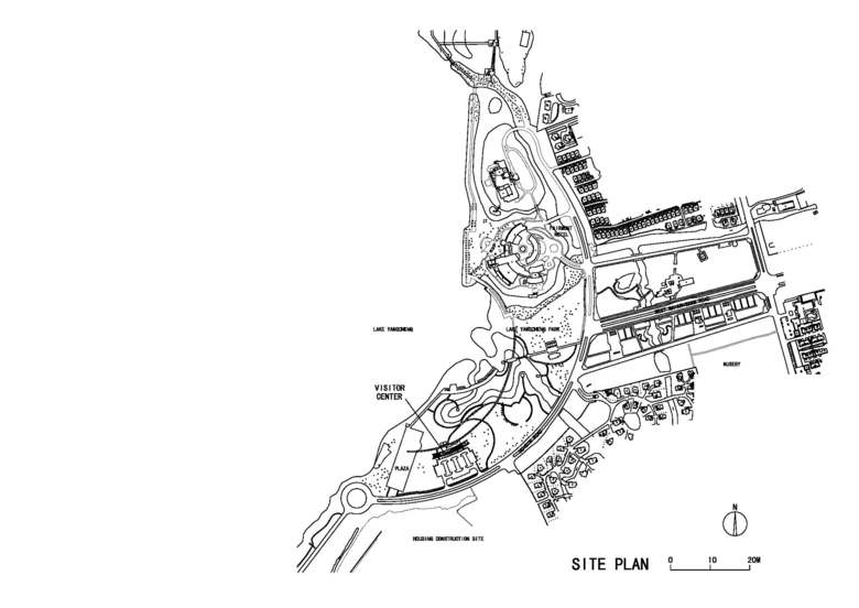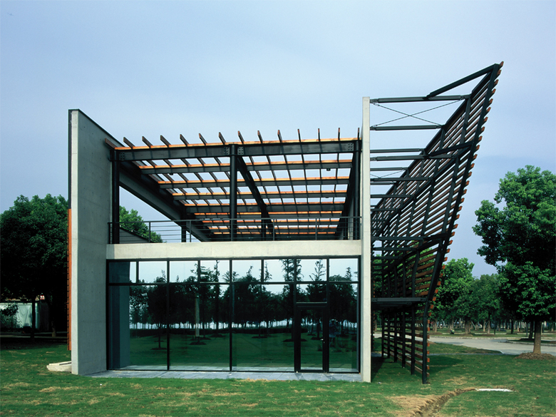 Sitting at the west suburb of Kunshan, a booming industrial city, the Lake Yangcheng Park of 42.5 hectares is the largest public green space on the lake shore, visited heavily by central-city residents during the week ends. The linear building site lies between the main public parking lot and a curved boardwalk which leads people to the waterfront and other attractions.