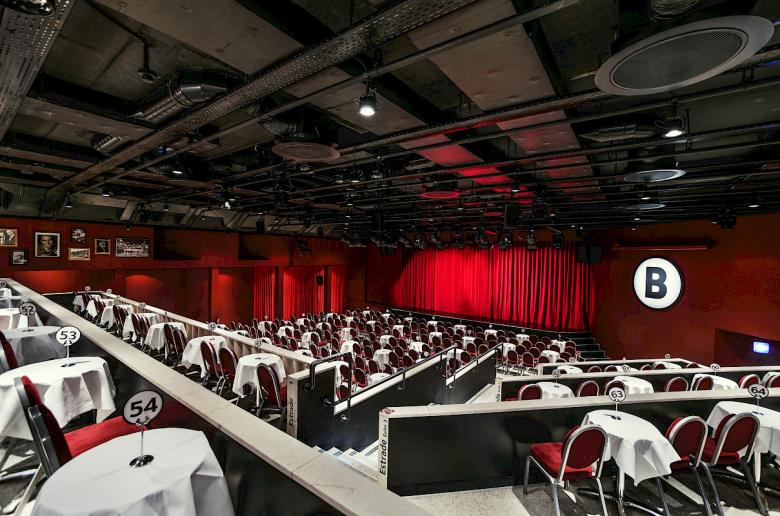 Das traditionsreiche Bernhard Theater erfuhr mit seiner Wiedereröffnung 1984 letztmals eine konzeptionelle Neugestaltung mit ausgeprägt raumgreifendem kubischen Gefüge und eindrücklicher zeitgemässer Material- und Formensprache.