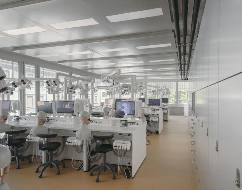 Das Gebäude gliedert sich in einen zahnklinischen Bereich sowie einen universitären Bereich für die zahnmedizinische Forschung und Lehre. Die praktische Anwendung der Zahnheilkunde im klinischen Bereich im direkten Austausch mit der universitären Forschung und Lehre in den angrenzenden Laboren, Hör-, Ausbildungs- und Seminarsälen sowie der universitären Bibliothek sollen die Ausbildung interdisziplinärer und hochwertiger gestalten.