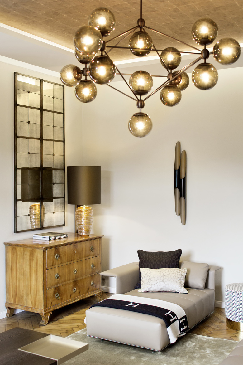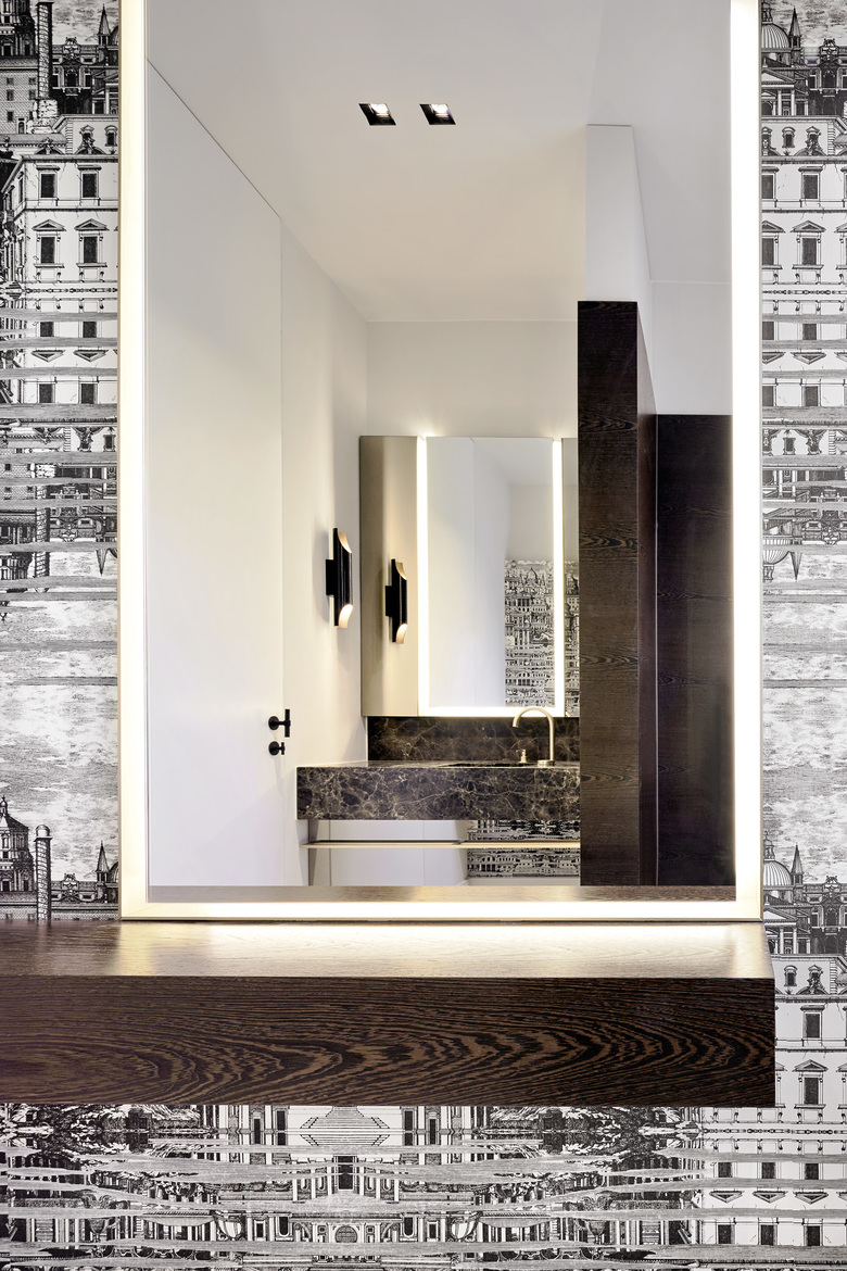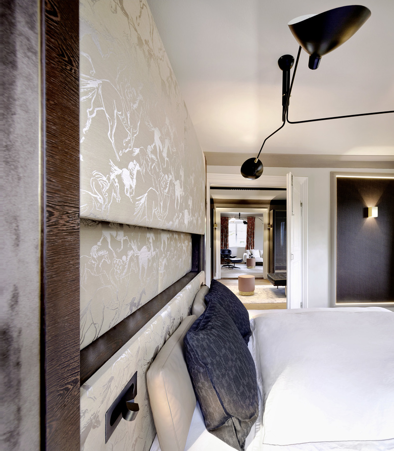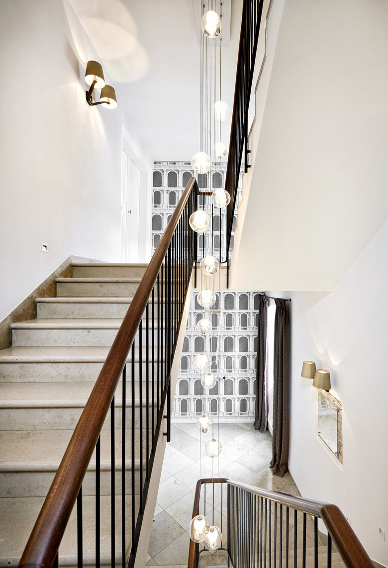 Das Interior wird von expressive Materialien wie Seide, Samt und Holz, die den prächtigen Charakter der Barockzeit wiederspiegeln, geprägt. Gleichzeitig vermitteln spannungsreiche Sichtbezüge Offenheit und Großzügigkeit. Leichtes und Schweres sind harmonisch vereint.