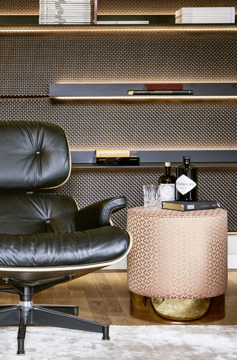 Wunsch war es, eine moderne Interpretation barocker Elemente und Materialien mit aktuellem Zeitgeist zu kombinieren und modernste Technik zu integrieren und dem Anwesen so seine eigene Geschichte hinzuzufügen. Das Ergebnis ist ein Wechselspiel aus kraftvollen Farben, Stilrichtungen und klaren minimalistischen Formen im Kontrast zu expressiven Materialien.
