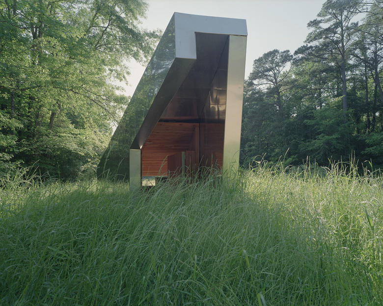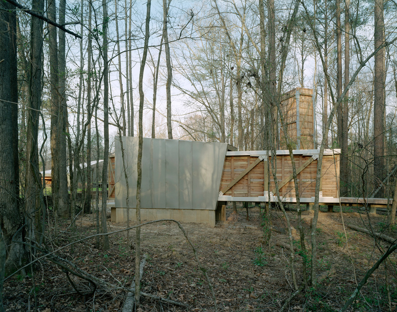 Three unique toilet "experiences": A fifty-foot "Tall toilet"; a "Long toilet" with 2 cantilevering walls that capture and frame a tree; and the " Mound toilet" captured in the earthen septic system of the bathroom complex.