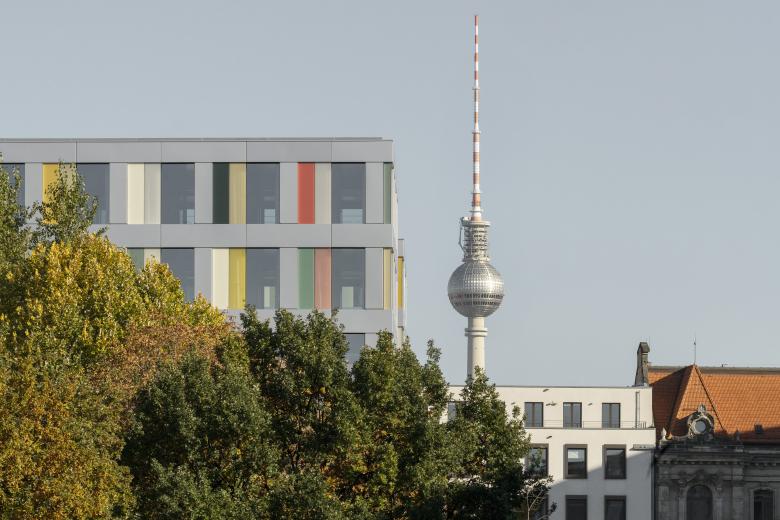 Dieser modulare Bürobau inmitten des Berliner Regierungsviertels wurde für den Deutschen Bundestag entwickelt. Der Baukörper reagiert auf sein komplexes Umfeld mit großer Einfachheit: Ein simpler H-Grundriss vermittelt zwischen der Kammstruktur des Marie-Elisabeth-Lüders-Haus und der Blockrandkante des angrenzenden Quartiers.