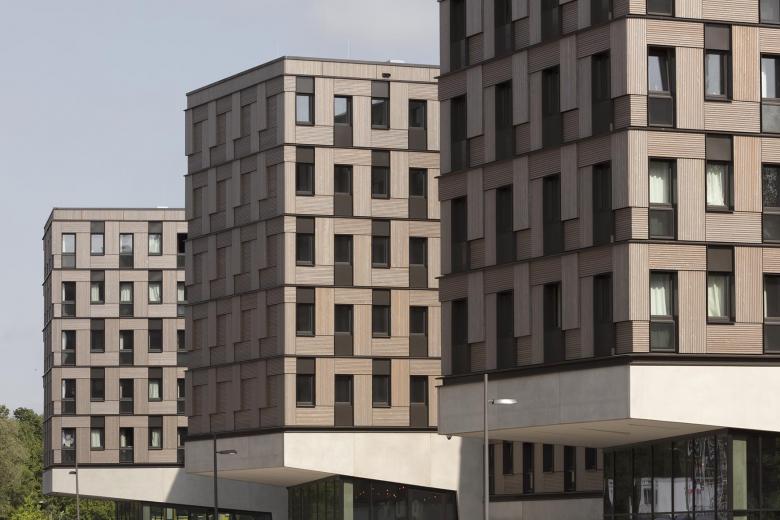 Woodie ist das (derzeit weltweit) größte Wohnbauprojekt in Holz-Modulbauweise und bietet Microappartments für 371 Studierende. Als Teil eines neuen Wohnquartiers in Hamburg-Wilhelmsburg knüpft es an den experimentellen Charakter der IBA 2013 an, und verschreibt sich den Grundsätzen des Universal Designs: nachhaltig, einfach, inklusiv.