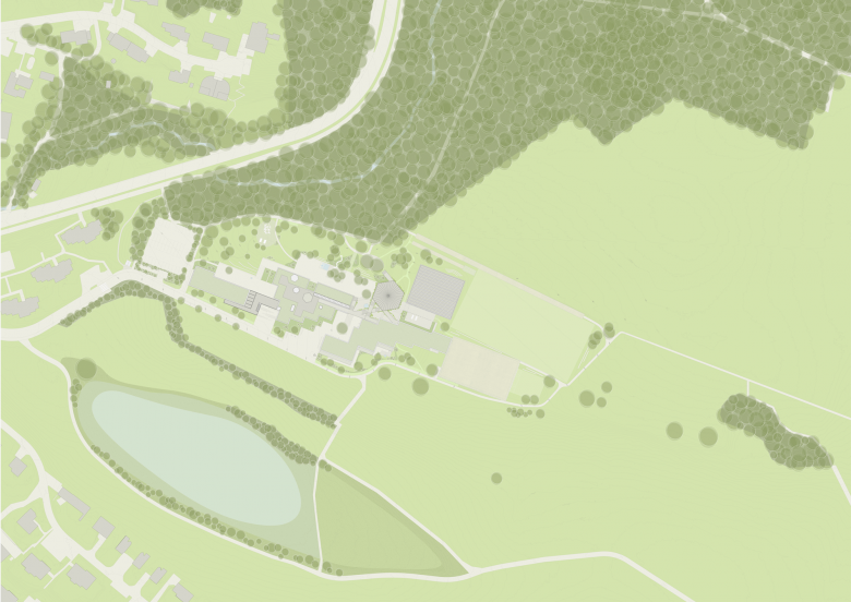 Die Schule Nägelimoos liegt einzigartig: zwischen Wald und Landwirtschaftsgebiet, zwischen Ruebisbach und Nägelimoosweiher, mit Aussicht über die Siedlungsgebiete des Glattals und die globale Infrastrukturlandschaft des Flughafens. Mit unserer Erweiterung möchten wir das Thema der Übergänge zwischen Innen und Aussen, zwischen Architektur und Natur, zwischen Lernen in der Klasse und Lernen im Freien ausbauen und anreichern.
