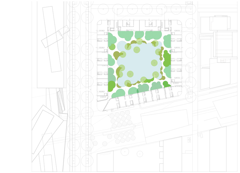 Im Unterschied zu einigen bereits realisierten Bauten ist den beiden Konzepten eines gemeinsam: Zu den umliegenden Strassen, Wegen und Plätzen wird der öffentliche Raum klar definiert: Der Block ist klar lesbar.
