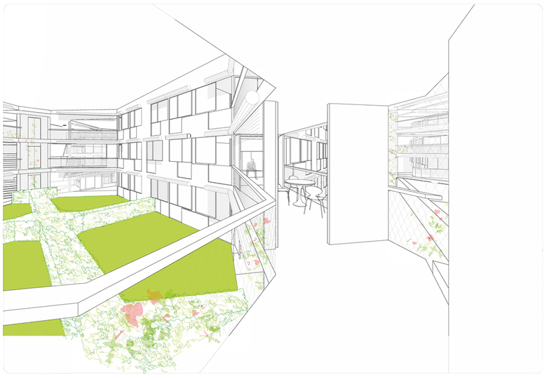 Die beiden Bautypologien stehen für urbanes Lebensgefühl und Nachbarschaft. Die urbanen Muster erhalten dabei eine zeitgemässe Neuinterpretation.