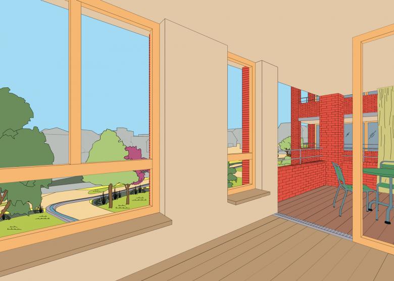 Die vorgeschlagenen, aussen selbsttragend abgestützten Balkone fallen baurechtlich nicht ins Gewicht und kosten pro Stück nicht wesentlich mehr, wenn sie 5 Quadratmeter grösser ausgebildet werden. In Bezug auf die Nutzungsmöglichkeiten ergibt sich hingegen ein Quantensprung. Der Balkon wird zum zusätzlichen Zimmer, welches den kompakten Geschosswohnungen etwas von ener Grosszügigkeit verleiht, die normalerweise dem Wohnen im eigenen Haus vorbehalten ist: Platz um Gäste zu empfangen, Hobbies zu pflegen, Pflanzen zu züchten oder auch ganz einfach freier, keiner spezifischen Nutzung zugewiesener Spielraum.