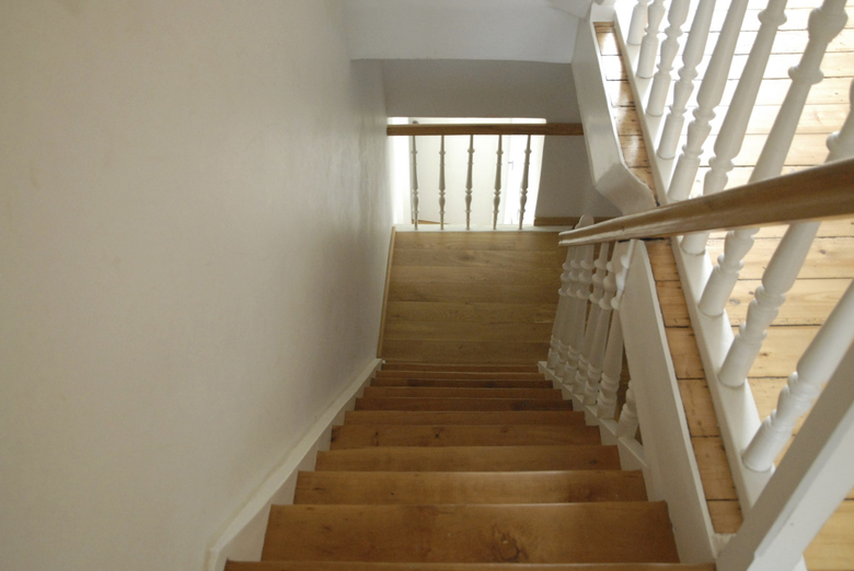 Im Rahmen der Sanierung wurden die räumlichen Zusammenhänge entsprechend zeitgemäßer Anforderungen neu konzipiert. Das sind zum einen helle, hohe Räume zum offenen Treppenhaus, sowie ein offener Raumzusammenhang des Gemeinschaftsbereiches, der um eine zentral angeordnete Feuerstelle ergänzt wird. Die Warmluft des Ofens unterstützt durch die Kaminwirkung des offenen Treppenhauses die Wärmeenergiebereitstellung der oben angeordneten Individualräume.