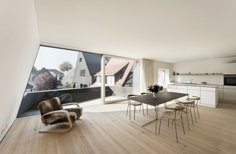 In der südlichen Altstadt Memmingens entstand in direkter Nachbarschaft zum Haus MuUGN ein Stadthaus mit zwei Wohneinheiten. Als "Drei-Fensterhaus" erscheint es zum Straßenraum als urtypisches Bild des städtischen Hauses. Es fügt sich in Dachform und Geschossigkeit in die Häuserzeile der Kemptnerstraße ein. Die Kubatur des Vorgängerbaus wurde übernommen und an heutige Anforderungen angepasst.