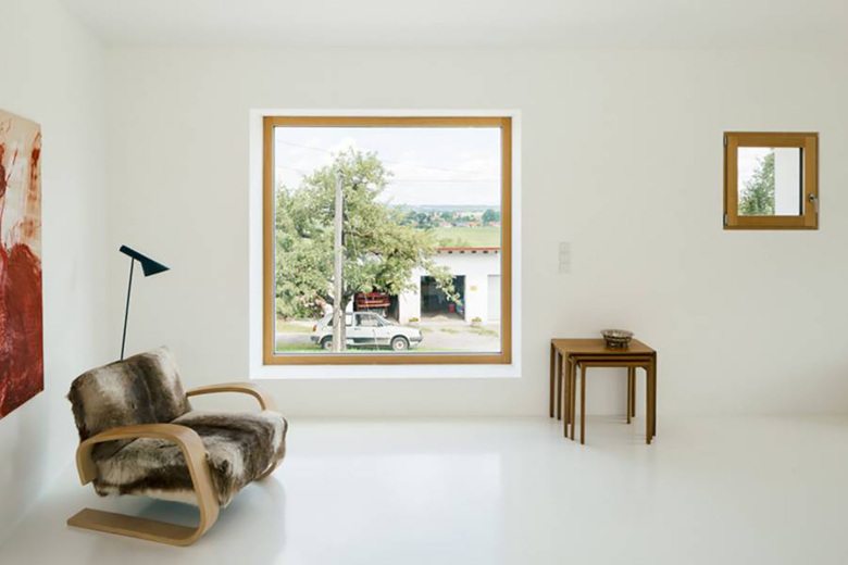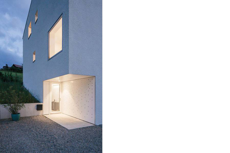 Das turmartige Haus am nördlichen Rand des Dorfkernes von Theinselberg orientiert sich in seinem Volumen und den verwendeten Materialien an den landwirtschaftlichen Gebäuden des kleinen Weilers. Betritt man das Haus, überrascht die Weitläufigkeit und räumliche Vielfalt auf insgesamt 150 m² Fläche. Große, meist fest verglaste Fenster rahmen spezifische Ausblicke und stellen einen starken Bezug zum Naturraum her. Durch den reduzierten Materialeinsatz und die ausgewählten, natürlichen Materialien entsteht eine ruhige Atmosphäre, die die Qualitäten des Ortes stärkt.