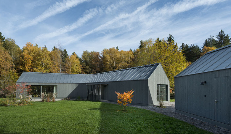 Die Lage des Hauses, inmitten des 2000 m² großen Wiesengrundstückes am Ortsrand einer Allgäuer Gemeinde, definiert durch die fingerartig in die Landschaft ragenden Gebäudeteile Außenräume unterschiedlicher Atmosphäre und Privatheit. Entsprechend ihrer Ausrichtung werden sie als Obst-, Kies-, Wellness- und Waldgarten mit Schwimmteich, Außenküche und Terrassen genutzt. Das eingeschossige Gebäude mit Satteldach wurde als barrierefreies Wohnhaus konzipiert. Um einen zentralen Kern mit Nebenräumen gliedert sich der y-förmige Grundriss. Auf diese Weise werden unterschiedliche Ausblicke in die Umgebung inszeniert und ein Wechselspiel aus Lebens- und Rückzugsräumen geschaffen.