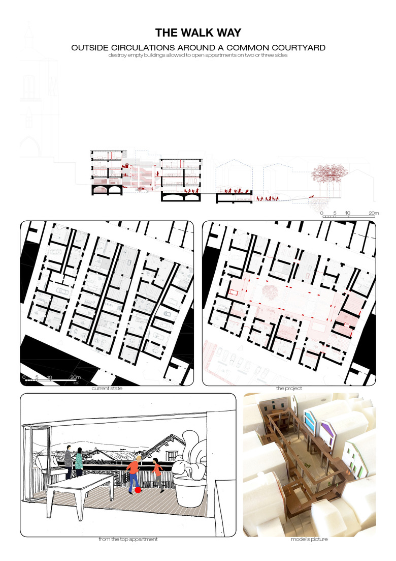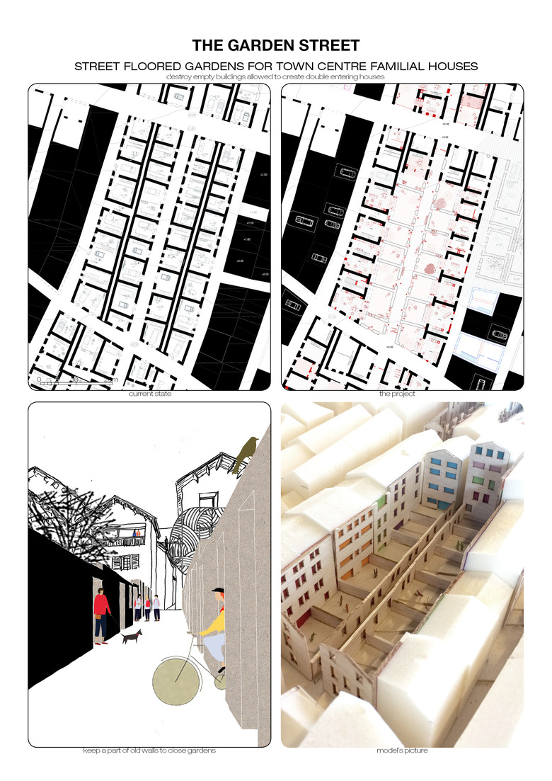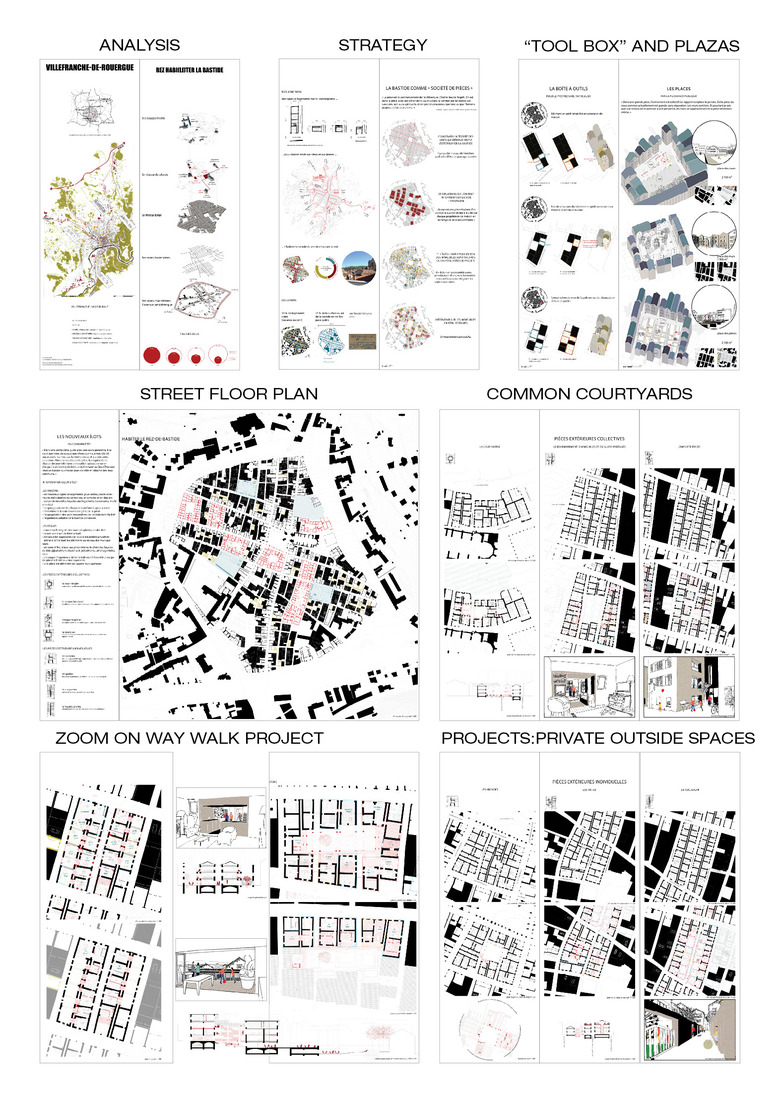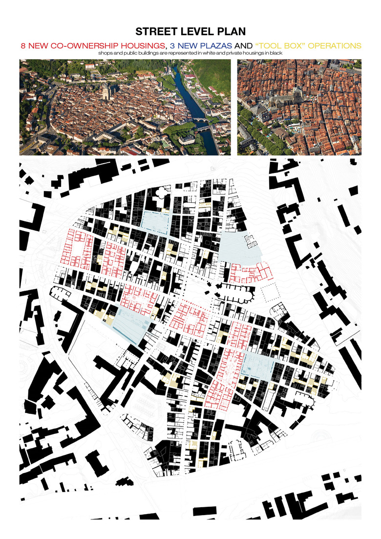 "In France, people are leaving town centers for the suburbs, taking the urban activity with them. However, proximity allows for greater social interaction and environmental sustainability. How can an ancient town center be adapted to a contemporary way of life? Which architectural interventions could breathe new life into medieval stones?"
