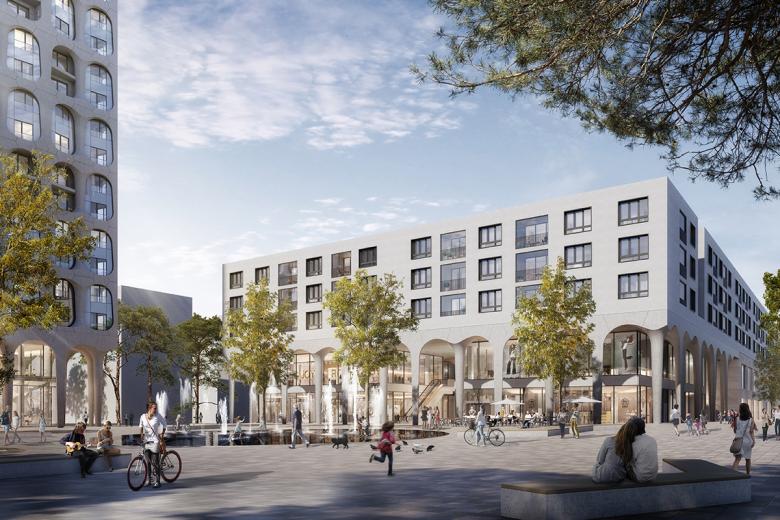 Freiham ist Münchens wichtigstes aktuelles Stadterweiterungs- und Wohnbauprojekt. Auf einer Gesamtfläche von 350 Hektar entsteht ein neuer Stadtteil, in dem rund 25.000 Menschen leben und 15.000 Menschen arbeiten werden. Unser Teil des Projekts, das Stadtteilzentrum am S-Bahnhof Freiham, ist der belebte Mittelpunkt des neuen Stadtquartiers. Rund um den zentral gelegenen Mahatma-Gandhi-Platz entsteht ein urbanes, lebendiges Quartier mit einem Mix aus Wohnungen, Einzelhandel, Büro-, Hotel- und Gastronomieflächen. Sein ausdrucksstarkes Gestaltungsmerkmal, die skulpturale Arkadenarchitektur rund um den Platz, prägt seine unverwechselbare Identität.