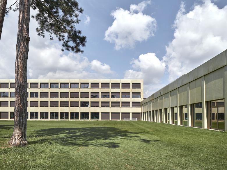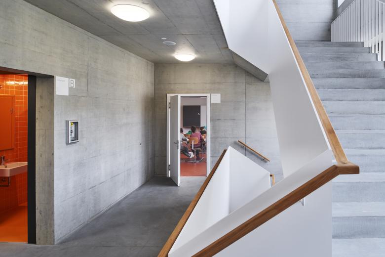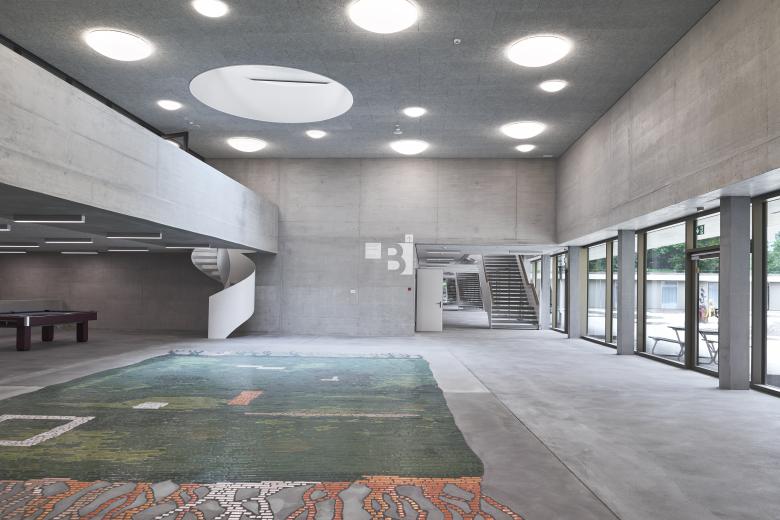 Das Schulhaus Sandgruben ist Teil der 2012 lancierten Schulraumerneuerung zur Umsetzung des HarmoS-Konkordats und seit über vierzig Jahren der grösste Schulhausneubau im Kanton. Im Sinne einer pädagogischen Neuausrichtung stand die Absicht im Zentrum, die Schule als Ganzes und nicht den einzelnen Klassenverbund zum Bezugspunkt des Schulalltags zu machen. Als beziehungsreiche und vielfältig nutzbare «Möglichkeitsorte» kommt dabei den Übergangsräumen eine zentrale Bedeutung zu. Zusammen mit dem Altbau spannt der windmühlenförmige Neubau einen grossen Pausenhof auf. An der Schnittstelle der unterschiedlichen Trakte liegt die Haupthalle. Der Regelunterricht findet in sogenannten Lernateliers statt, einem durchlässigen Cluster aus Inputraum, Gruppenraum und Atelier mit Einzelarbeitsplätzen. Wie später in der Berufswelt, sind die Klassen alters- und niveaudurchmischt. Seit dem Schuljahr 2016/17 besuchen rund 570 Schülerinnen und Schüler den Unterricht im Sekundarschulhaus Sandgruben, wovon rund ein Fünftel mit besonderen Förderangeboten. Das Gebäude soll ihnen einen stabilen Rahmen bieten, der gleichzeitig flexibel genug ist, sich mit der Gesellschaft weiterzuentwickeln und neuen Anforderungen gerecht zu werden.