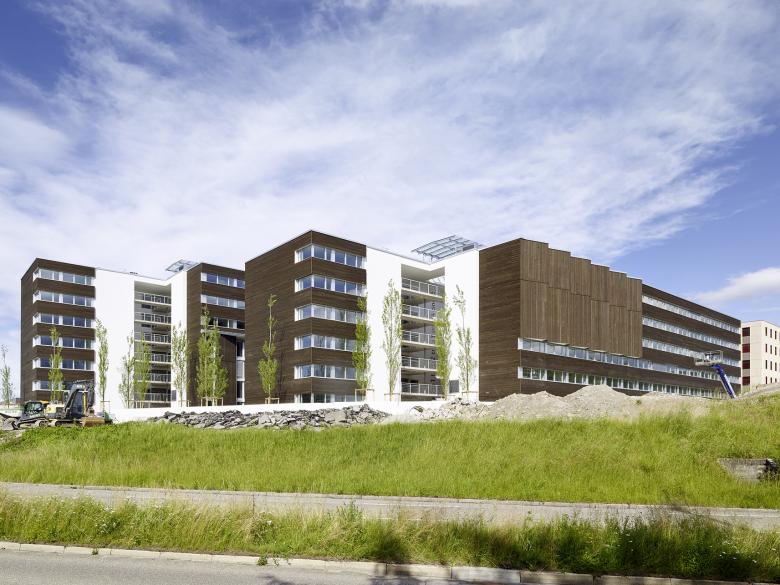 Vier einbündige von Ost nach West verlaufende Zeilenbauten werden zu zwei Wohnhäusern mit zentralem Erschliessungshof gruppiert. Ein zweigeschossiges Randgebäude im Osten, dem ETH-Campus zugewandt, verbindet und verdichtet die beiden sechs- und siebengeschossigen Baukörper zu einem städtischen Gebäudekonglomerat. Nach Westen öffnen sich die vier Zeilen zur Landschaft. Um der Lage des Grundstücks am Übergang von Stadt und Landschaft gerecht zu werden, sind die Baukörper in Länge und Höhe gestaffelt. Dichte und Höhe steigern sich von Südwest nach Nordost, von der Landschaft zur Stadt. Zwischen den Volumen entwickelt sich ein dichtes Netz von Erschliessungswegen, die durch mehrere Räume mit unterschiedlichen Abstufungen von Öffentlichkeit und Privatheit führen. Diese entwickeln sich analog zur Volumetrie vom öffentlichen Stadtplatz im Nordosten zum semiprivaten Aussenraum im Südwesten.