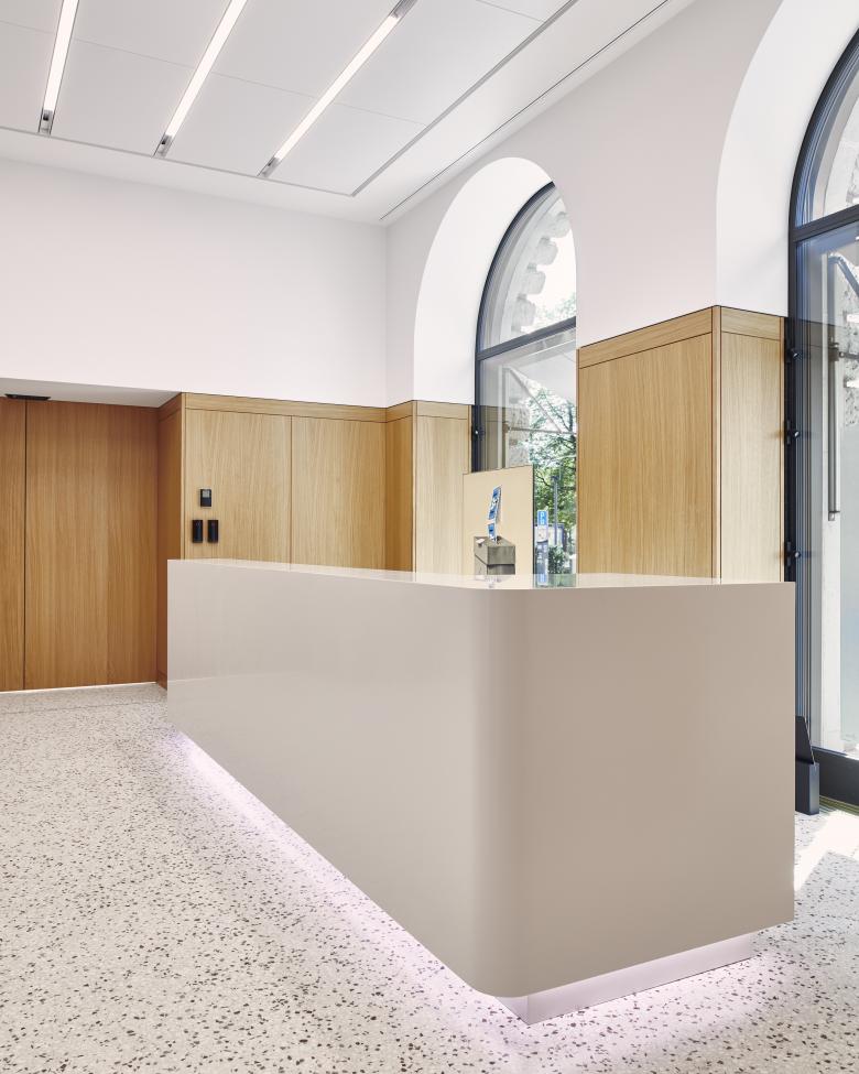 Das Geviert am Zürcher Stadthausquai wurde 1889 vom Architekten Adolf Brunner als herrschaftliche Wohnüberbauung erstellt. Es besteht aus fünf Parzellen, wovon die Schweizerische Nationalbank ab 1969 vier schrittweise erwarb und zu Büros umnutzte. Der Gesamtumbau ertüchtigt die Liegenschaft baulich und betrieblich für die nächsten dreissig Jahre. Zur Bewahrung der reichhaltigen Stuckdecken erfolgt die haustechnische Erschliessung der Büroräume primär im Bodenbereich. Die stark verstellte Kuppel wurde bereinigt und ist nun als Cafeteria erlebbar. Dank dem neuen Informationszentrum ist ein Teil des Erdgeschosses öffentlich zugänglich.