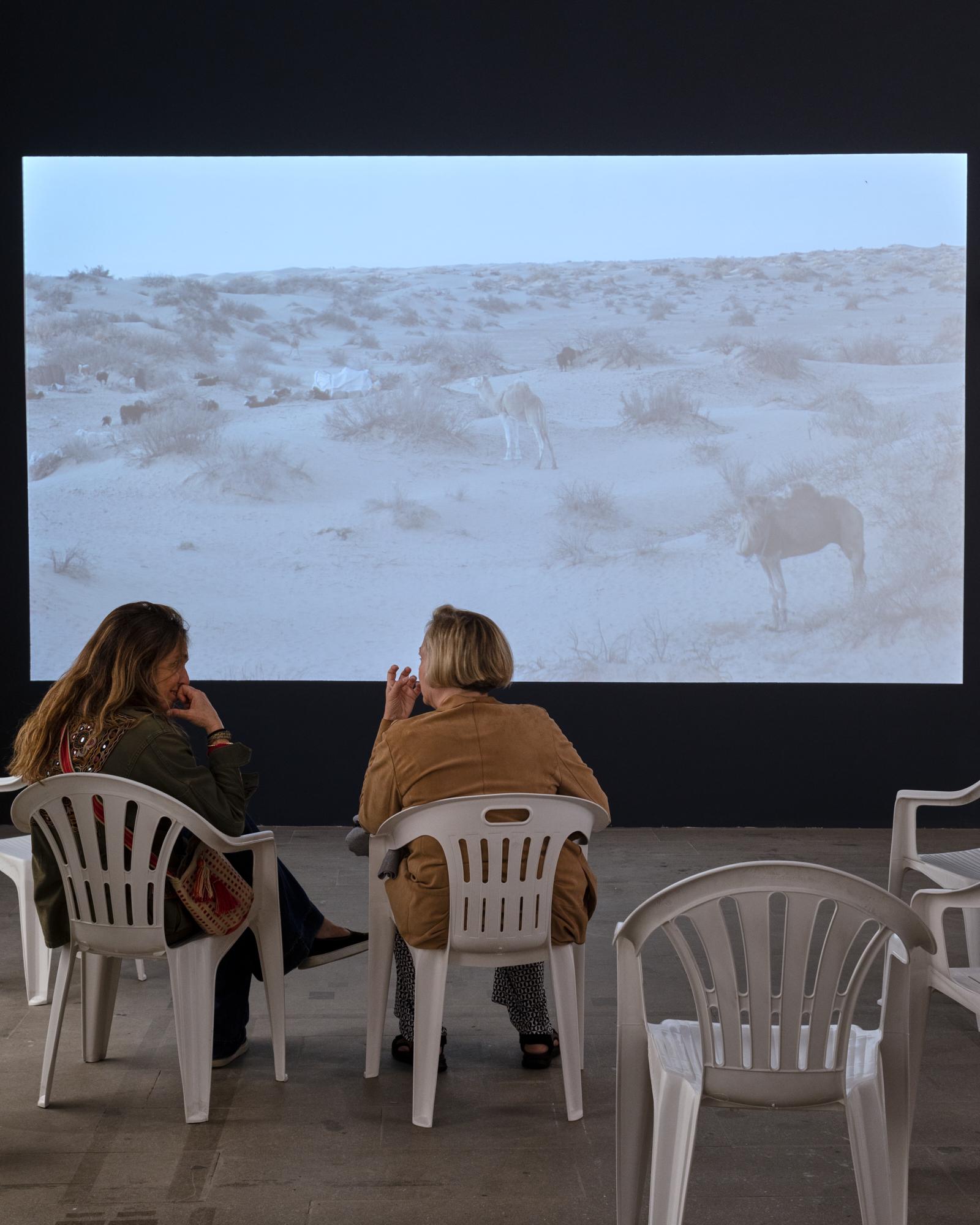 Speaking with architect Ricardo Flores amidst the impressive installation that almost literally transplants the studio of Flores & Prats from Barcelona to the Arsenale, he explained to me that Lesley Lokko asked them not to create anything new for the Biennale — do not create any waste. I knew a little bit about La Biennale di Venezia's recently implemented commitment to environmental sustainability, but this conversation was the first time I considered it from the perspective of a participant in the exhibition, rather than as an attendee (my trip to Venice for the vernissage required me to indicate how I was getting there and where I was coming from, in effect determining my carbon footprint as an attendee). In terms of materials, the Biennale recommends minimizing the use of raw materials, using renewable or recycled materials, and using materials that “are conceived to extend their useful life, and can therefore be reused as they are in other Biennale events or elsewhere.” Hearing Flores explain the impact of the commitment on their installation made it click for me: So that's why there are so many films in the exhibtion!