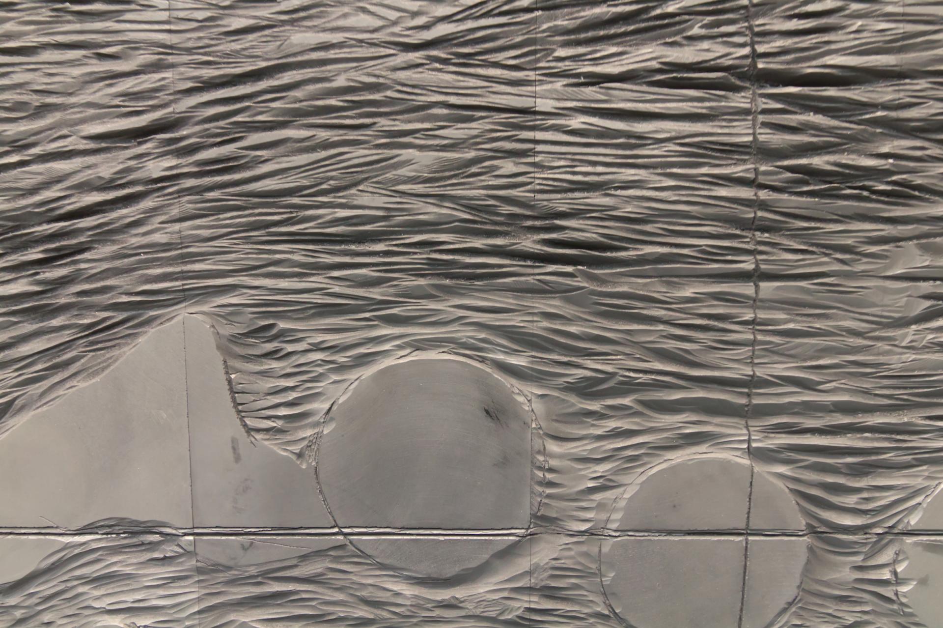 Thandi Loewenson was recognized by the international jury for her contribution to the main exhibition, The Uhuru Catalogs, which, in their citation, “materializes spatial histories of land struggles, extraction, and liberation through the medium of graphite.” It articulates the intertwining of decolonization and decarbonization more effectively than any piece in the Biennale. Medium is the message, as the drawings are composed on blocks of industrial graphite, the material typically used in the production of lithium-ion batteries and therefore in short supply due to increased global demand. “Here, graphite is put to use as a conduit, a charged medium,” Loewenson writes, “that aims to energize a consciousness of the conjoined terrains of earth and air in movements for climate justice and equitable futures for all.”