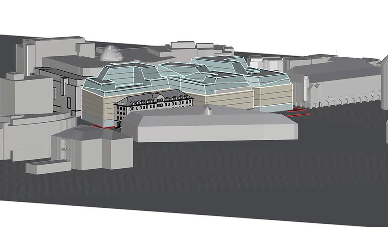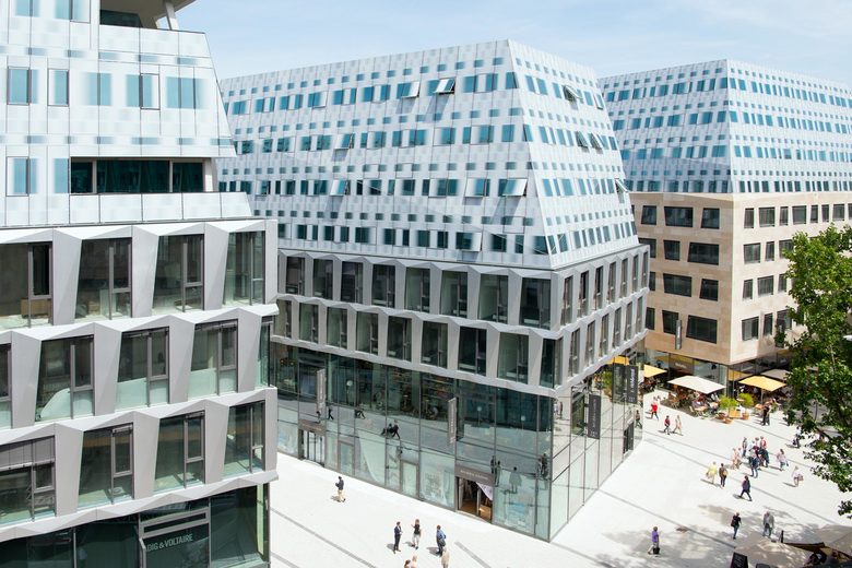 Im innerstädtischen Raum spielt die Tageslichtversorgung für die Qualität der Innen- und Außenräume eine wichtige Rolle. Dabei geht es einerseits klassisch um die Tageslichtautonomie der Büros und Wohnungen im oberen Teil der Gebäude und andererseits um die Besonnung der Außenbereiche in den Gebäudezwischenräumen. Die architektonischen Entwürfe wurden mittels Verschattungs- bzw. Besonnungsstudien ausgearbeitet und erzielten so die Gestaltung der Dachform, den Anteil an Verglasung und die geeignete Materialwahl: Die Verglasung im Dachbereich ist bedruckt und reflektiert die Sonnenstrahlen als diffuses Licht, erzielt so eine Verbesserung der Ausleuchtung der Innenhöfe und Gassen.