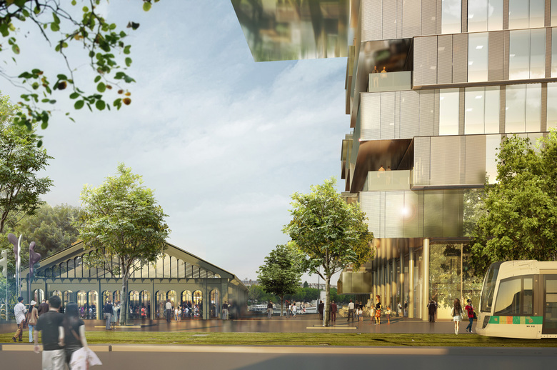 Reinventing the codes of the office real estate in order to place the user at the very heart of the project, Bridge is mainly composed of working areas scattered in a 10-floor building aiming to create the best “user experience” possible. Shared spaces and a company cafeteria are located on the ground floor of the main building. Coworking spaces, shops and restaurants are open to the public in the market building.