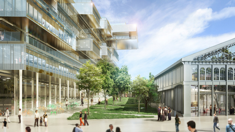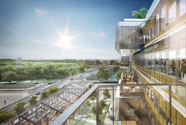 Bridge is located close to the Pont d’Issy where Paris meets Issy-les-Moulineaux. The architectural project aims to redesign the junction between the capital and the suburban town. Jean-Paul Viguier et Associés with Altarea Cogedim imagined a global project based on a vision for the office of tomorrow, an office that would foster team working, innovation and cooperation.