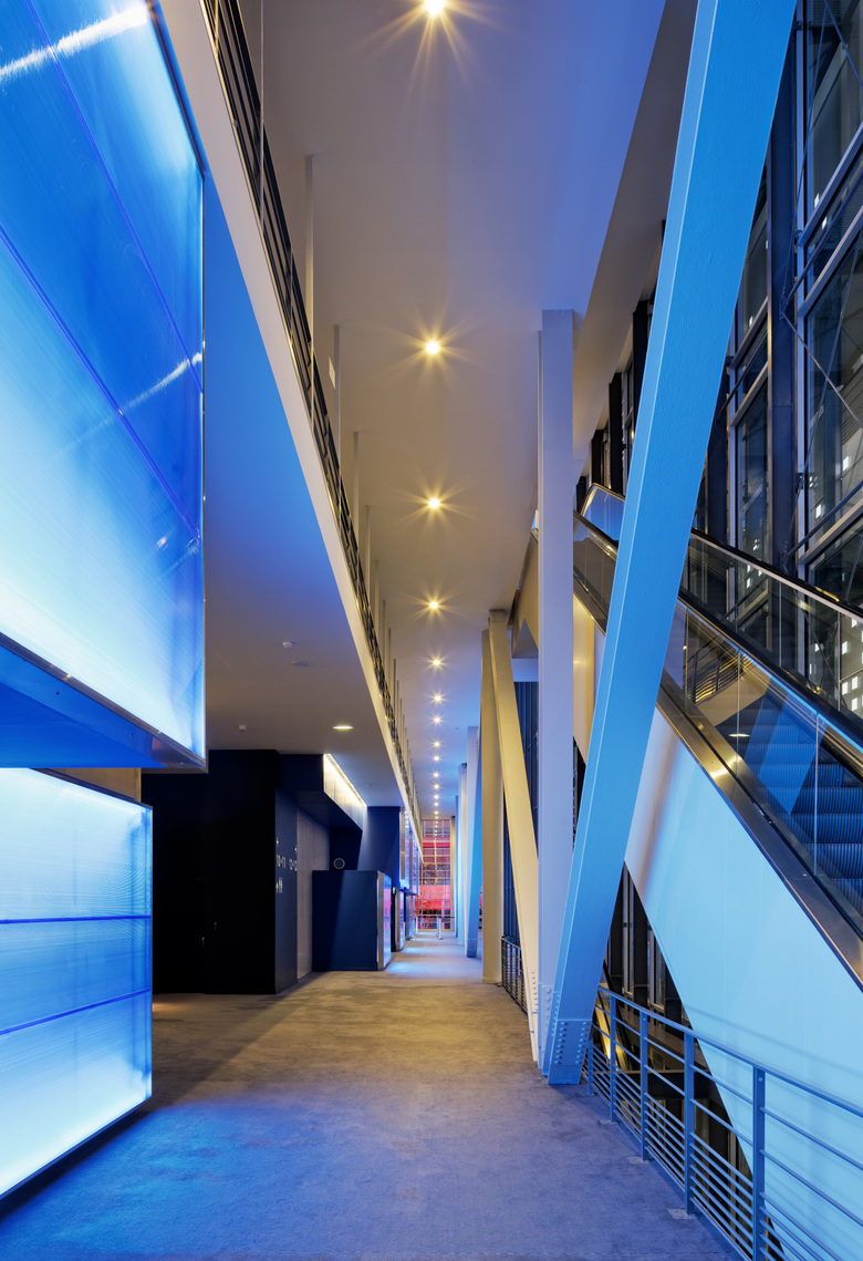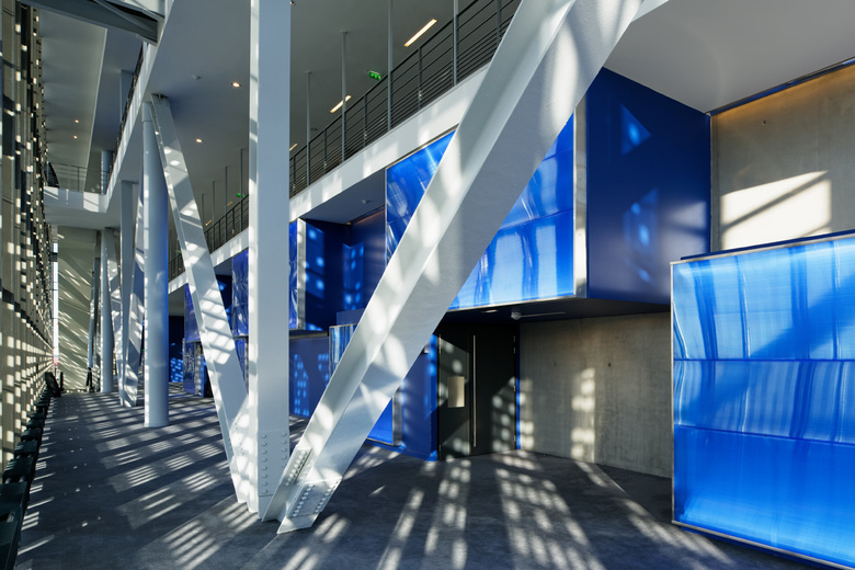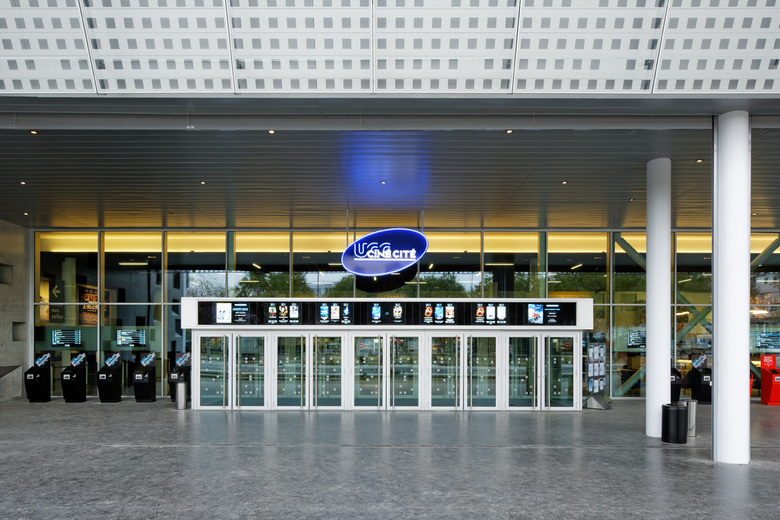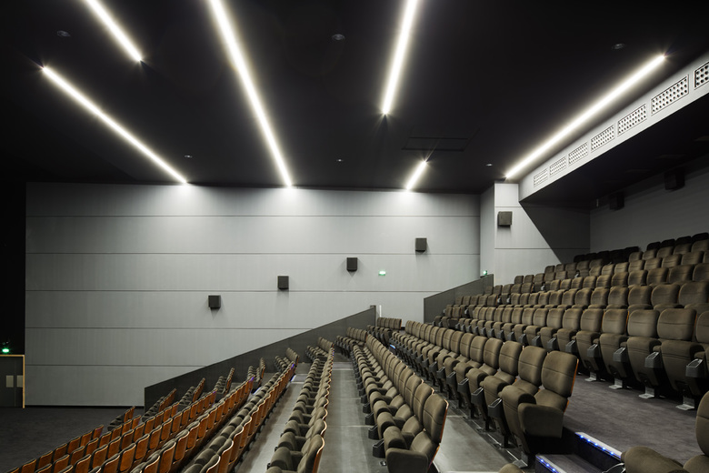 The design of the building presents a series of staggered blocks assembled like a magic lantern or a film canister. The spectacle is not only found in the movie theatre but also in the design of the building and the way it is connected to its environment, the visitors becoming the actors of the show.
