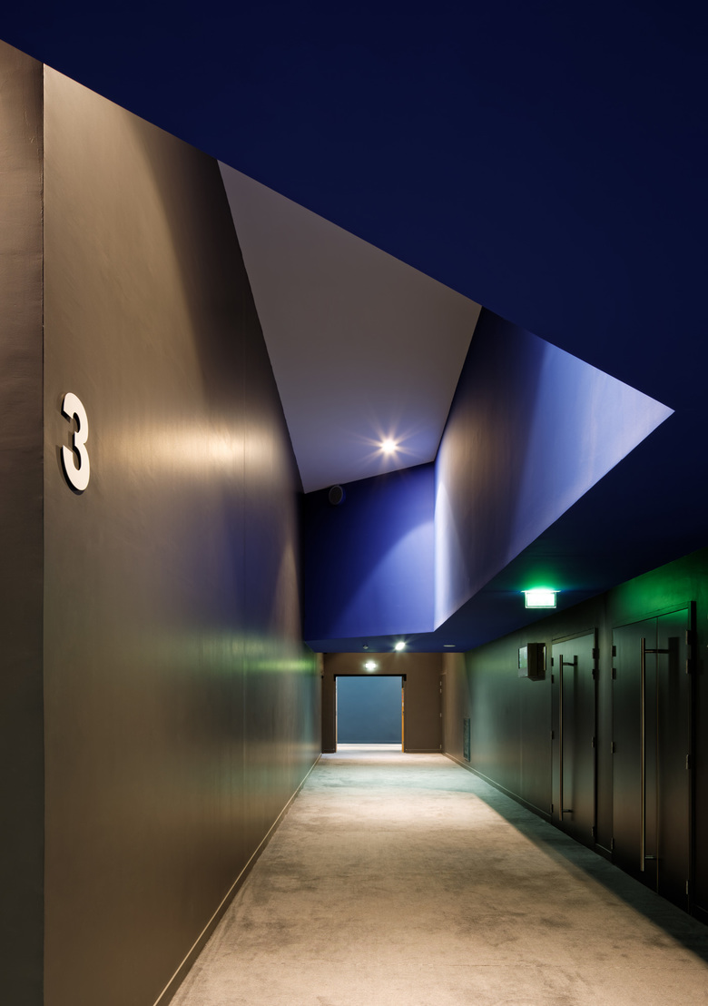 On the outskirt of Paris, this new multiplex is a key infrastructure for the newly designed Claude Bernand urban interstice. North of the « boulevard périphérique » (the Parisian ringroad), south of the Boulevard Macdonald and east of the Canal Saint Denis, this intersection is a sector of great urban flux. The wooden footbridge connecting both sides of the périphérique is a booster of human flow and creates a crossing point in front of the building.