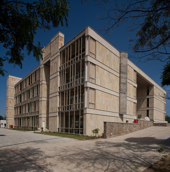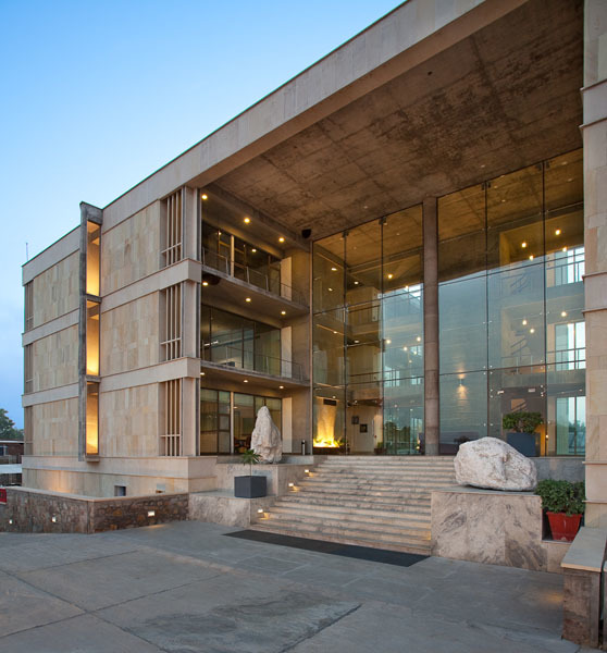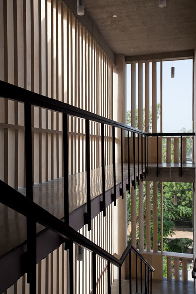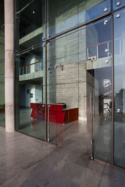 The design solution for the new office building for Wolkem India Ltd, in Udaipur – Rajasthan, emerged from simple principles – all employees must have direct access to natural light and ventilation, the materials used should require minimal maintenance, and the energy efficiency of the building should be maximized.
