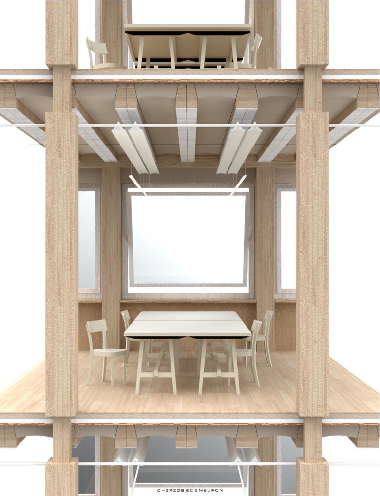 Das Projektteam forscht an behaglichkeits- und gesundheitsförderlichen Konzepten sowie an einer neuen Form der Miete. Firmen sollen nur das exklusiv mieten, was sie wirklich brauchen, und sich darüber hinaus gemeinsame Flächen teilen (access over ownership). «Wir müssen fähig sein, alles, was wir herstellen, und alles, was wir machen, allem eine nachhaltige und auch eigene Schönheit zu geben. Das ist eine Herausforderung, aber auch eine unglaublich reizvolle Idee, weil das eine neue Ästhetik schaffen wird auf dieser Welt», so Herzog & de Meuron.