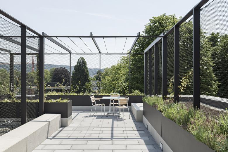 Das Tragwerk des Ersatzneubaus ist in Skelettbauweise erstellt. Um eine möglichst hohe Flexibilität für zukünftige Umnutzungen zu gewährleisten, sind im Gebäudeinnern in den Obergeschossen Stützen in variablem Regelraster (4.8 - 8 m) angeordnet. Die maximale Stützenspannweite beträgt 9.2 m und befindet sich im Empfangsbereich des Erdgeschosses. Die oberirdischen Geschossdecken aus Stahlbeton liegen auf Stahlbetonstützen und wenigen Stahlbetonwänden auf. Die Tragstruktur im Untergeschoss besteht ebenfalls aus einem Betonskelettbau mit einer Flachdecke, aufgelagert auf der umlaufenden Aussentragwand, Innentragwänden und wenigen Stützen. Die vertikale Lastabtragung erfolgt linear über die Geschossdecken auf die Stützen, Kerne und Wände in die Fundation, von wo die Lasten ins Erdreich abgetragen werden. Die horizontale Aussteifung erfolgt über Ortbetonkerne und weitere durchgehende Wandscheiben aus Stahlbeton.