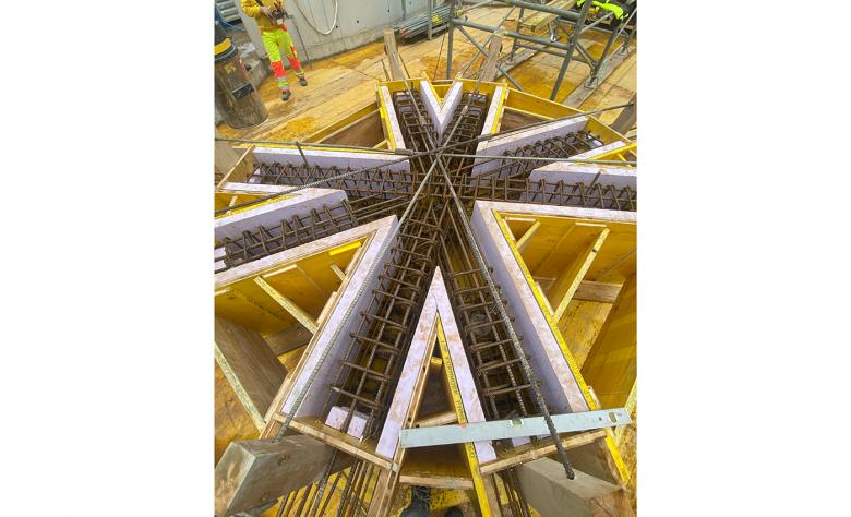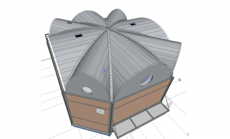 Der Kuppelbau besteht aus drei Obergeschossen (inkl. Erdgeschoss) mit einem Grundriss in Form eines unregelmäßigen Achtecks. Das Kuppeldach hat die Form eines unregelmäßigen Kreuzgewölbes aus sich durchdringenden Tonnenschalen. Haupttragelemente sind acht Kreuzrippen in den Schnittbögen der Tonnenschalen. Die dazwischen gespannten Gewölbesegmente bestehen aus Ortbeton. Volume 3 besteht ebenfalls aus drei oberirdischen Geschossen mit rechteckigem Grundriss und Flachdach. Die Tragstruktur der Gebäude ist eine Stahlbetonskelettkonstruktion mit Flachdecken, die auf Stützen und Wandscheiben entlang der Fassade ruhen, welche die horizontale Aussteifung sowie die Schallisolierung nach außen übernehmen.