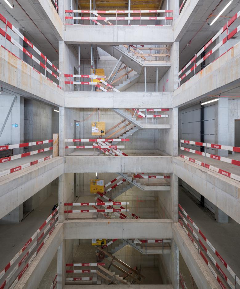 Die Tragstruktur ist in Skelettbauweise mit Stützen und Flachdecken in Ortbeton erstellt. Aus Flexibilitätsüberlegungen hat der Nutzer Flachdecken gefordert, die schlaff bewehrt sind. Die horizontale Aussteifung erfolgt mittels den Lift- und Treppenkernen und weiteren Wänden in armiertem Beton. Der Bau 98 ist ein Ersatzneubau für den Bau 61, dessen Abbruch ebenfalls von ZPF geplant und begleitet wurde. Generell ist das Areal hier sehr beengt, was bei der Planung der Baustelleneinrichtung, des Abbruchs und der Baugrube besonders zu berücksichtigen war.