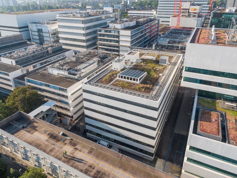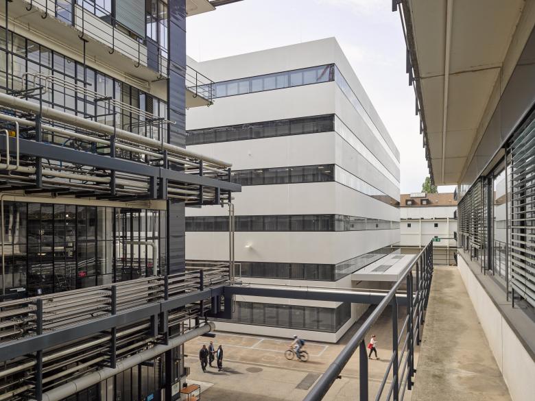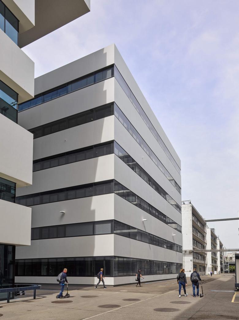 In den 1920er- und 1930er-Jahren war das Basler Firmenareal von Roche als «weiße Fabrik» bekannt. Diese Charakteristik gilt noch heute. Typisch sind die helle Fassadenfarbe, die Bänderung der Fenster und die klaren Formen. Diese Aspekte zeigt auch der Bau B098 IVR, der mit seinen sechs Ober- und vier Untergeschossen einen Teil des Forschungszentrums pRED bildet. Der Neubau bietet modulare und flexible Arbeitsbereiche in einer modernen, zeitlos-eleganten und funktionalen Architektursprache.