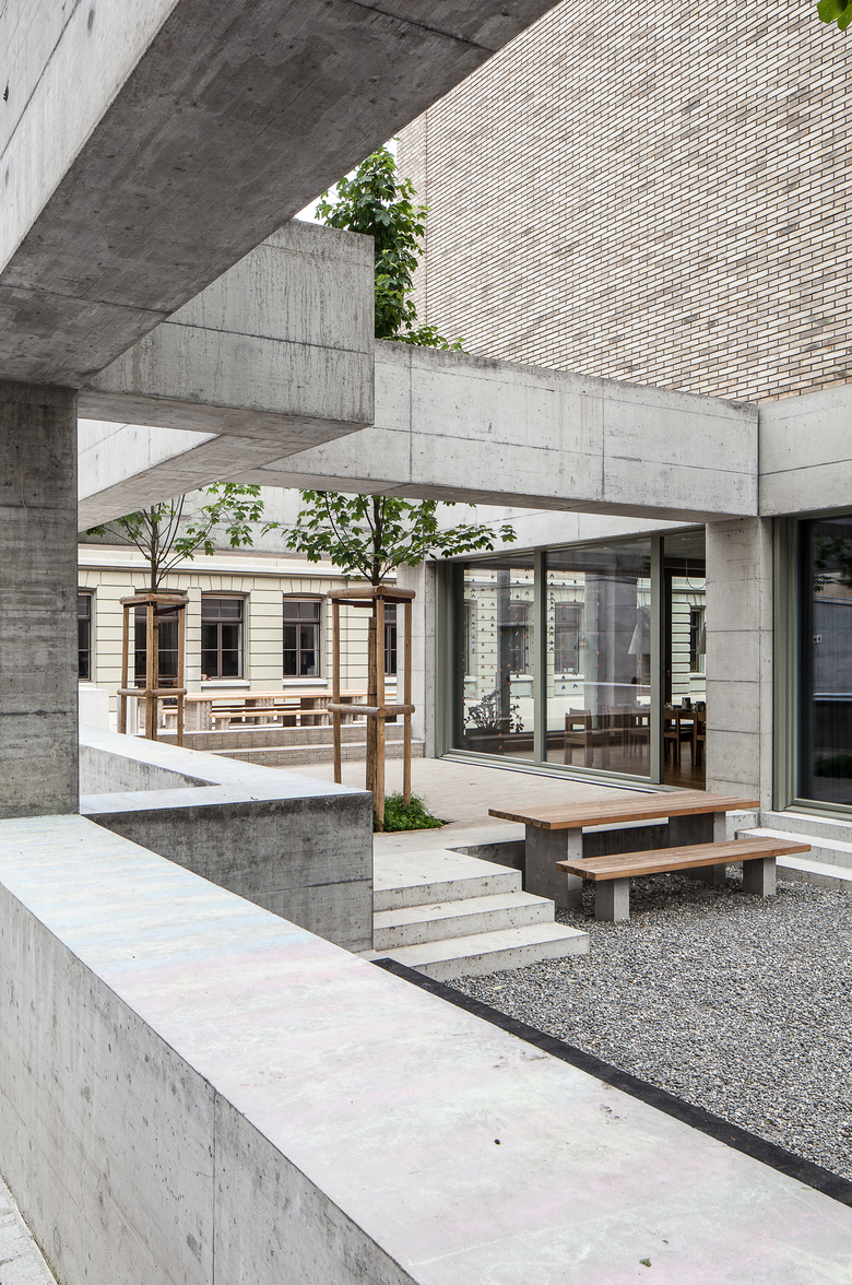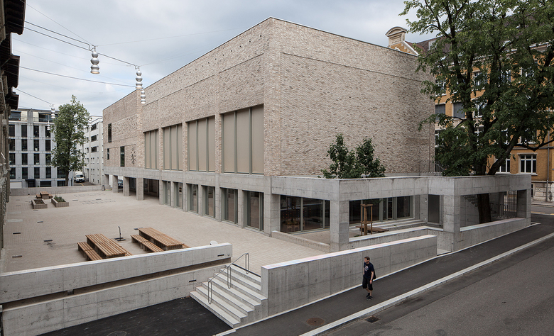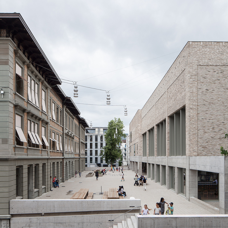 Nach 130 Jahren ohne nennenswerte bauliche Eingriffe musste das Schulhaus St. Leonhard im Quartier Davidsbleiche in St. Gallen saniert und räumlich an das veränderte Schulkonzept angepasst werden. Durch die Auslagerung aller raumgreifenden Nutzungen in den Neubau wurde das historische Schulhaus in seiner Struktur erhalten. Dem Neubau gelingt durch die Klinkerfassade, seine Setzung und Form ein differenziertes Zusammenspiel mit dem St. Leonhard-Schulhaus und so eine Stärkung der Gesamtanlage mit dem Schulhof als Mittelpunkt.
