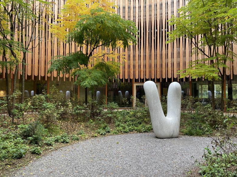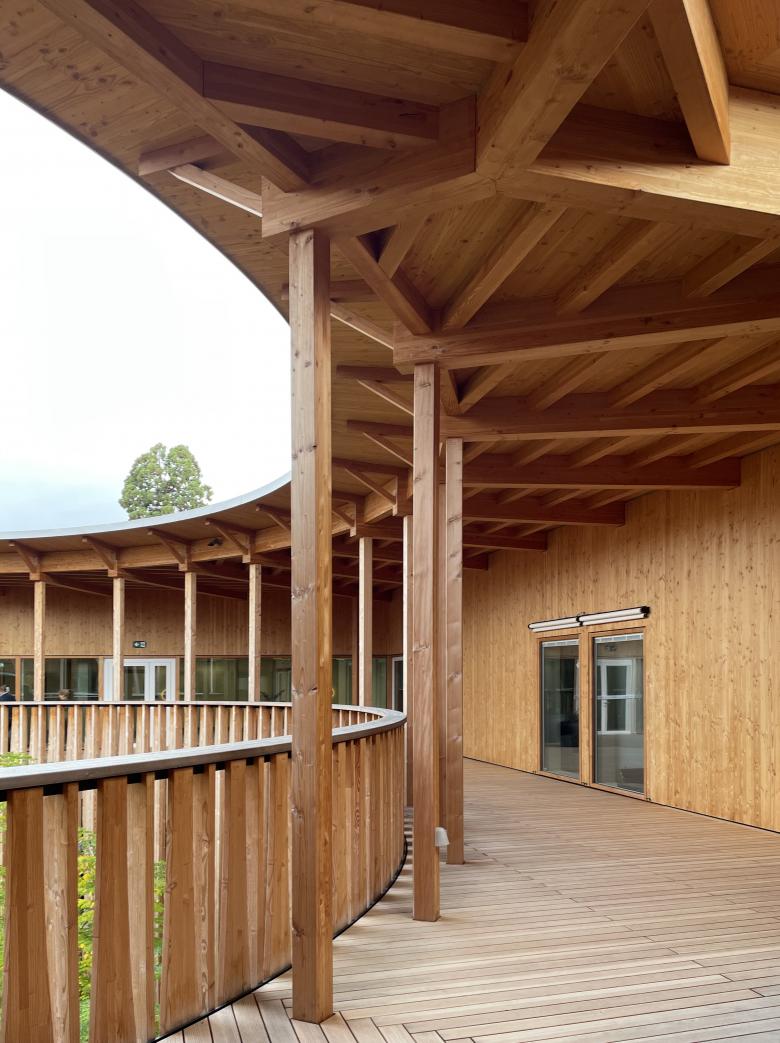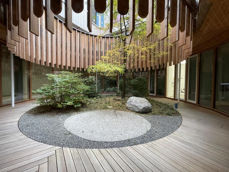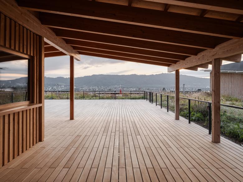 Diese Flexibilität wird mit der Dachkonstruktion weitergeführt. Neben dem Helikopterlandeplatz und Aufbauten für die Gebäudetechnik findet sich viel freie Fläche, die extensiv begrünt ist. Bei einem Umbau kann die Begrünung entfernt und die Fläche temporär für Container oder Provisorien auf dem Dach genutzt werden. Das Tragwerksraster wird an mehreren Stellen von Räumen und Innenhöfen unterbrochen, die grössere Spannweiten erfordern. Stahl-Beton-Verbundträger sowie vorgespannte Deckenbereiche ermöglichen diese Sprünge im Raster des Tragwerks.