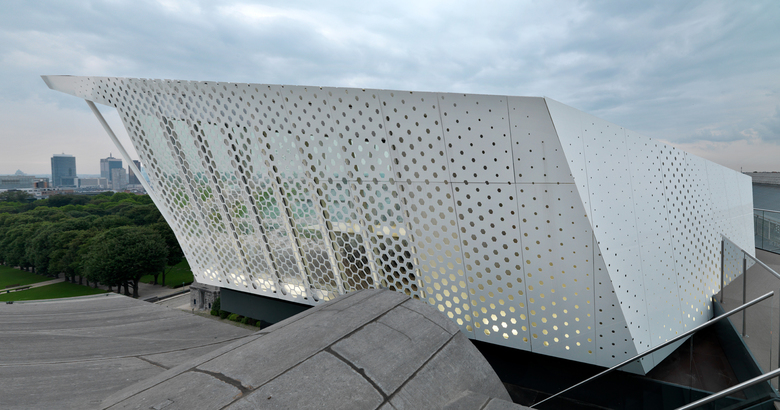 The pavilion’s lightness of form is emphasised on the exterior by its white colour and given a sense of movement through the use of an aluminium “skin” that has been laser-cut to create a texture with a geometric design that covers the whole of the outer surface. The base of the building, slightly raised with respect to the ground, accentuates the idea of lightness and the cleanness of form that characterises the entire structure. Inside, more highly advanced technological solutions can be found in the lighting, heating, sound system and of course, the kitchen equipment.