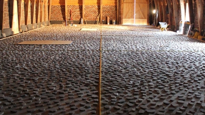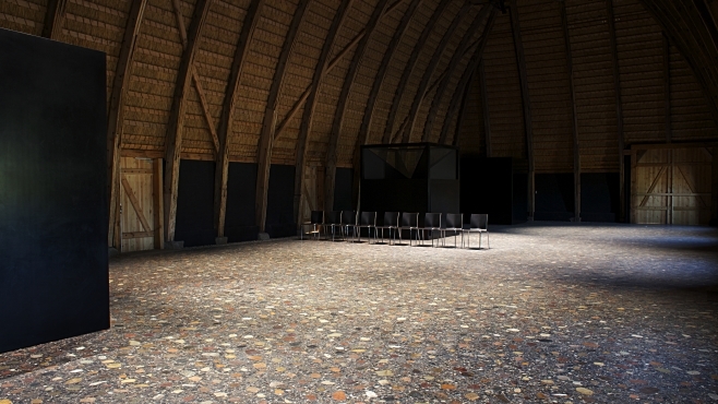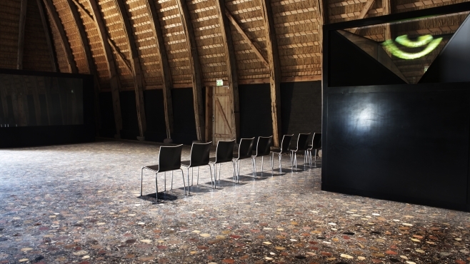 Den gamle lade med den specielle tagkonstruktion, skal totalrenoveres. Laden får igen stråtag og indvendigt skal tegnestuen udvikle et fleksibelt udstillingsrum, der ved hjælp af moderne teknologi fortæller historien om fundet af Guldhornene, Møgeltønder, Schackenborg og Slotsfelt lade. Desuden vil der blive mulighed for skiftende udstillinger og musikalske arrangementer. Tegnestuen har udviklet en lokal terrazzo, bestående af tilslag af store marksten fra området. Terrazzoen bliver støbt i en gang af Peter Bendsen, og vil dække hele det 300 m2 store gulv. Tre mobile bokse i sort glasfiber møblerer gulvet; indeholdende publikumtoilet, biograf og en digital 360 graders projektering af Guldhornene udviklet af Vizoo.