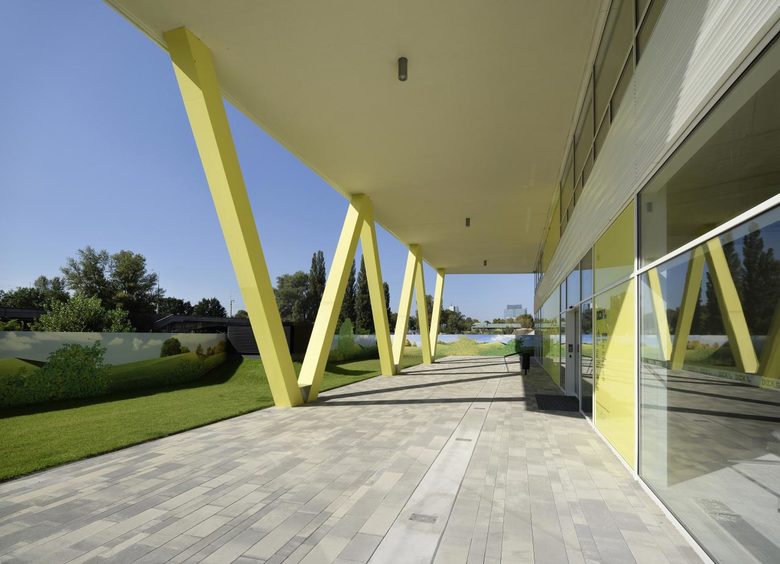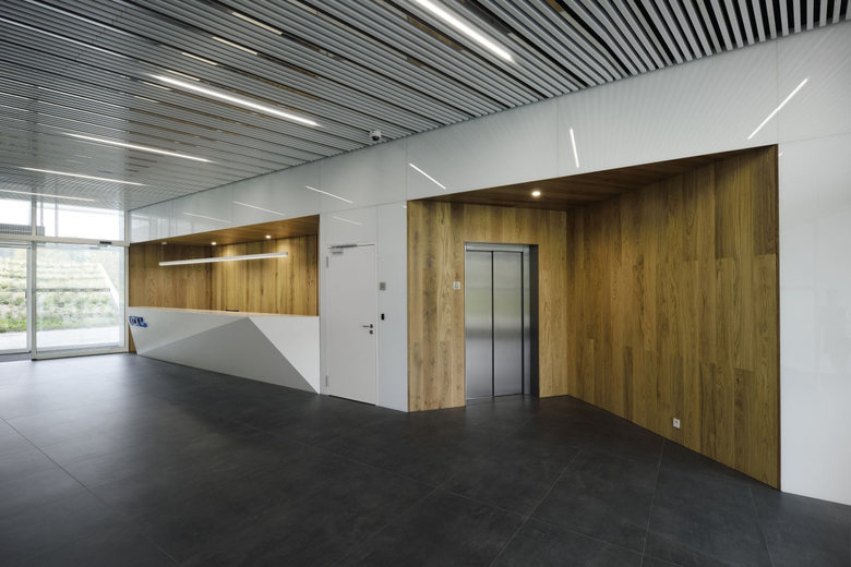 Thanks to its cascading shape each floor offers terraces and views towards the marina placed into the bay of the Vltava river. the building offers office and commercial space in a total of 6 receding floors and two underground car park levels for the tenant's employees. The building was designed to meet sustainable environmental standards - certified as LEED Gold.