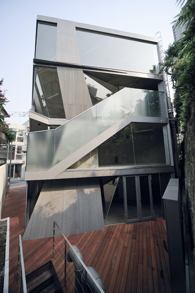 代官山町には坂道や階段状の路地が多い。散策が楽しい、新しい発見に遭遇する空間。その階段状路地を設計に取り込んだ。敷地内に設けた路地状の空地は、そのまま上階へつながっていく。階段を上がると、まちの見え方も少し変わる。空地が、隣接する屋敷の古い庭とつながっていることに気づく。