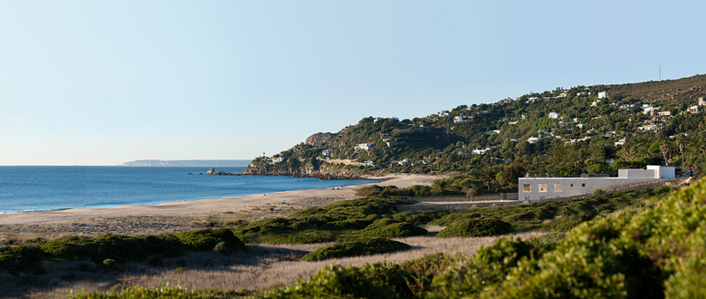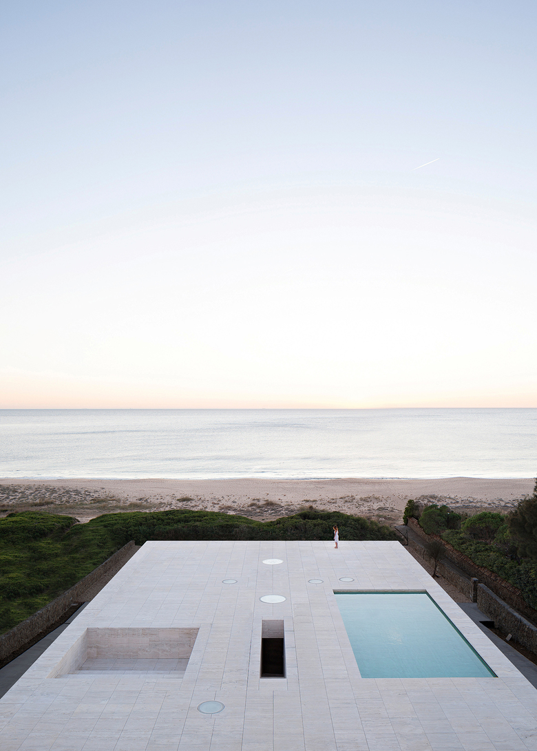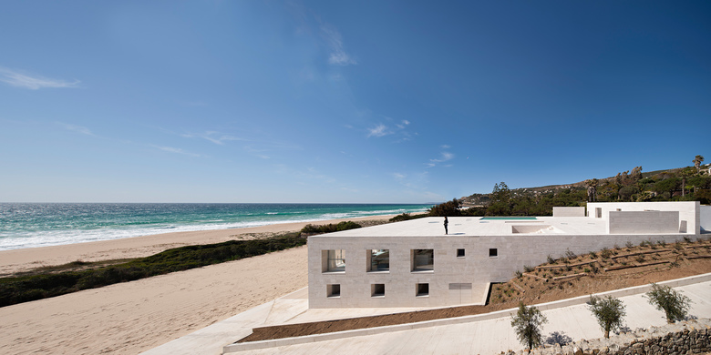 On a marvelous place like a piece of earthly paradise, at Cádiz, we have built an infinite plane facing the infinite sea, the most radical house we have ever made. At the very edge of the waters of the Atlantic Ocean, where the sea unites the new and the old continent, emerges a stone platform. At the place where all the ships from the Mediterranean used to pass and still pass by as they head off into the Atlantic.