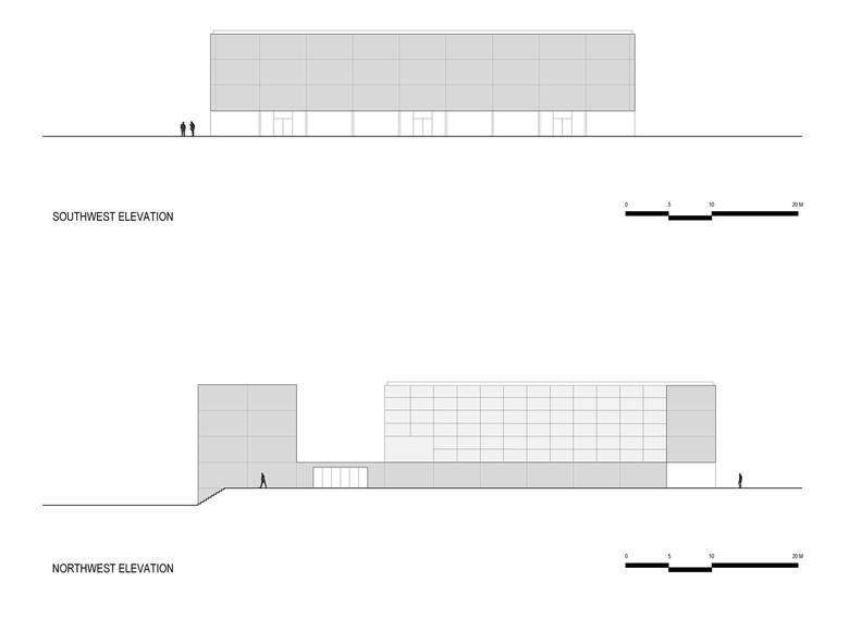Two clean, well-defined boxes joined together by a low-rise building whose roof becomes an inter-connecting patio. The approximate floor dimensions of the building are 50 x 60 m, and a maximum height of 12 m, thus coinciding with the average height of the main buildings on the campus.