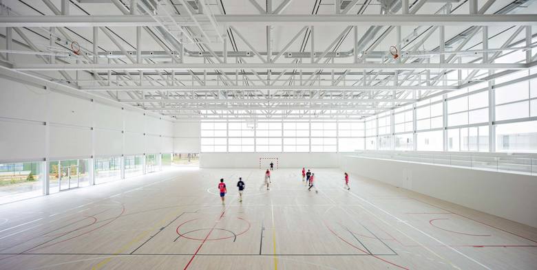 The design of the building is restrained and volumetrically adapted to the general layout of the campus in terms of maximum height and alignment. And the sports and teaching areas will be clearly differentiated in terms of volume and material. The fundamental element of the project is a large translucent box of light, filtered and controlled, entering into a spatial relationship with the main square of the campus.